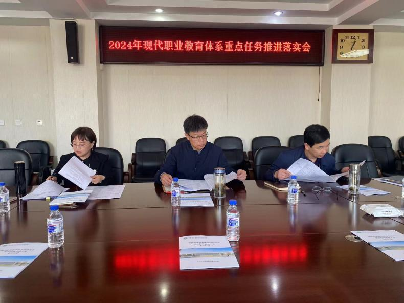 4月2日,学校召开2024年现代职业教育体系重点任务推进落实会议。校长杨勇、副校长于钧、副校长张晓娟出席会议,会议由张晓娟主持。 会上,教务处处长罗大伟汇报了2023年现代职业教育体系重点任务落实情况。国家级立项建设各项目负责人分别汇报具体执行情况及下一步工作计划。 于钧对2024年度现代职业教育体系重点任务工作进行部署。张晓娟对2023年重点任务落实情况进行总结,并对2024年重点任务培育提出具体要求。 杨勇在总结讲话中指出,各负责人要迎艰克难,以更高的标准、更详实的举措,推动现代职业教育体系各项重点任务的落地见效。 教务处、发展规划、信息中心及各二级学院负责人参加会议。 (供稿单位:教务处 初审:孟令飞 复审:刘莹 终审:汤海涛)