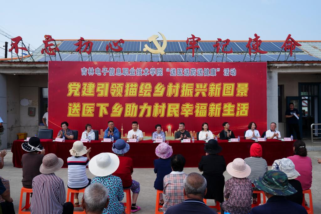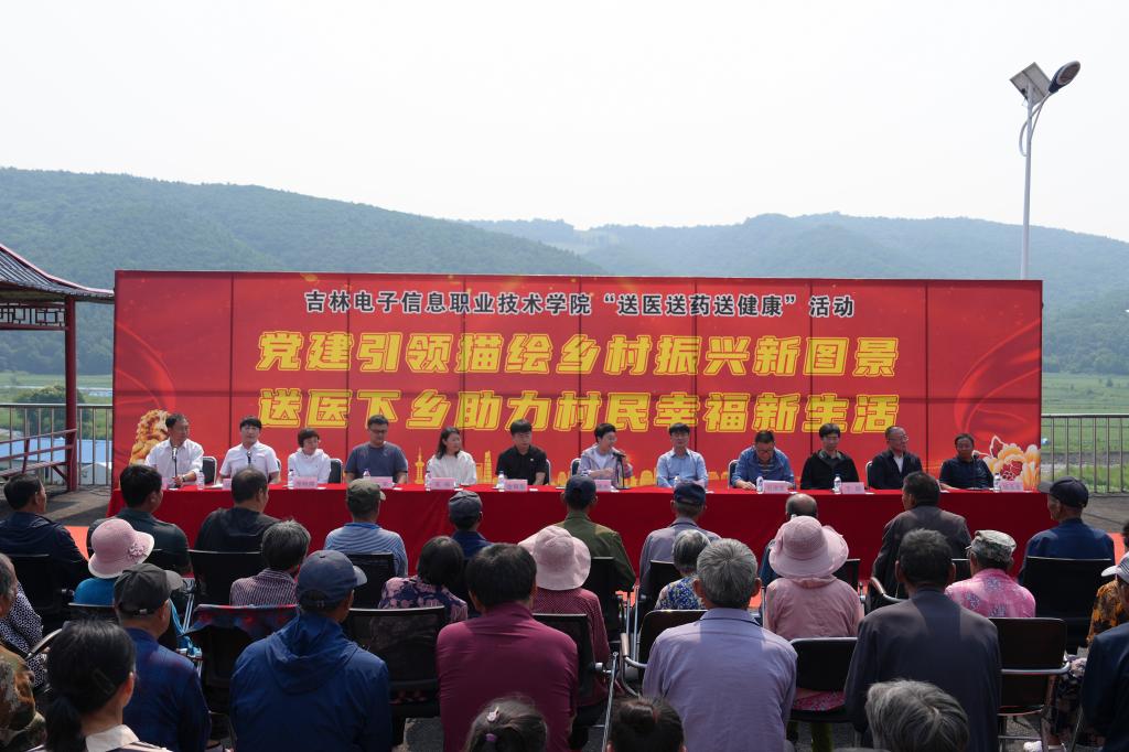 7月10日,在东升村活动启动仪式上,汪清县副县长公维坤出席活动并对何晓杰一行表示热烈欢迎,东升村党支部书记、村主任杨玉金致辞,春阳镇镇长金银天向学校赠感谢牌,党委书记何晓杰讲话并代表学校向村民代表赠送家庭常备药品,与会领导向美丽庭院农户发放纪念品,吉林市康圣医院常务院长丛凡捷作表态发言。