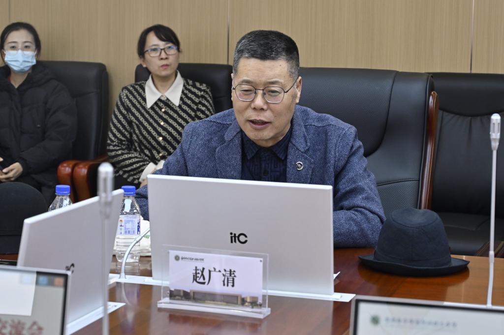 智慧冰雪文旅学院王辉院长汇报了自2009年来我校非遗文化进校园的成果,结合智慧冰雪旅游专业群的发展规划,表达了未来将从数字非遗,智慧文旅的角度发掘、传承吉林冰雪非遗文化的愿景。