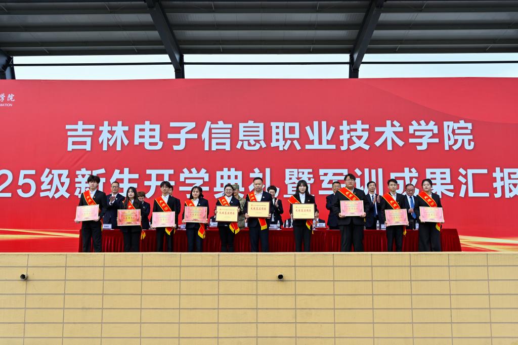 学生工作处处长孙凯同志宣读关于表彰2025级学生军训先进集体、先进个人、2024-2025学年度学生先进集体和先进个人的决定;团委书记云飞同志宣读关于表彰2024-2025学年度学校共青团工作先进集体和优秀个人的决定;教务处处长朱楠同志宣读2024-2025学年度学生竞赛获奖情况。