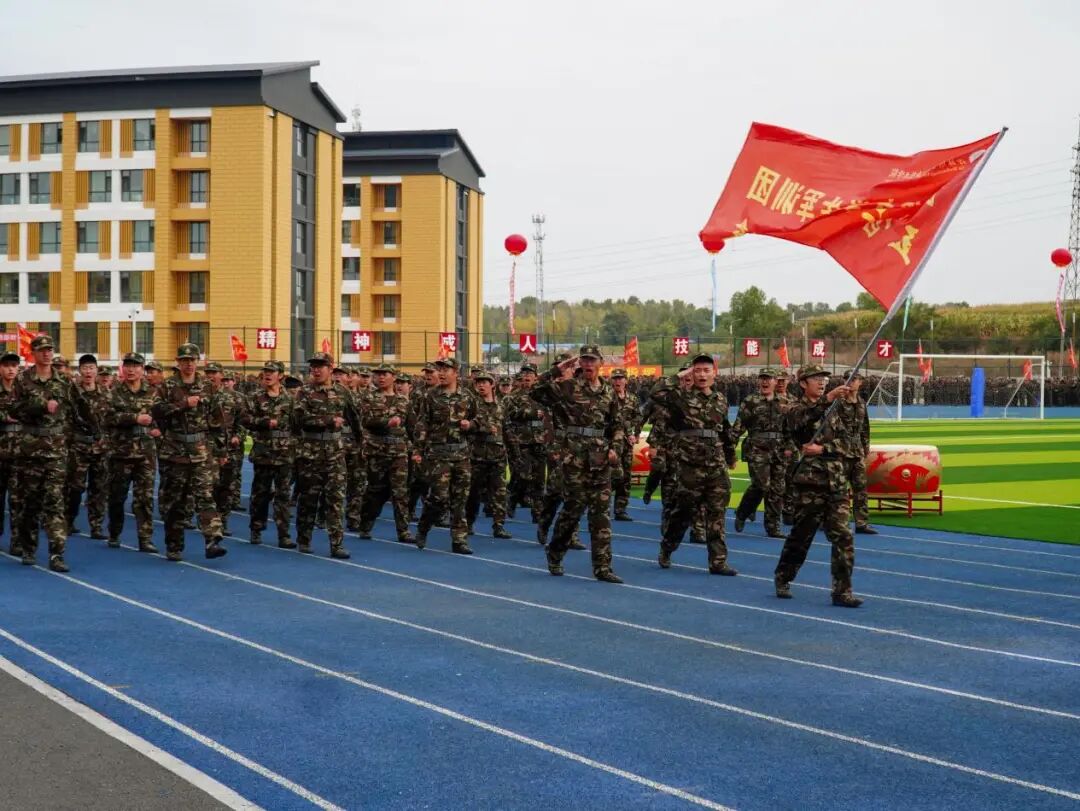在军训闭营仪式上,何晓杰检阅了全体受训学生,伴随着激昂的乐曲,各学生方队依次通过主席台接受检阅。他们气宇轩昂、英姿飒爽,踏着整齐的步伐,嘹亮的口号萦绕耳边,挺拔的身姿成为一道风景。在随后的军训科目表演环节,同学们带来了一场整齐划一、气势如虹的军体拳表演,充分展现了新时代学子昂扬向上的精神风貌、扎实良好的军事素养和默契无间的团队协作精神。